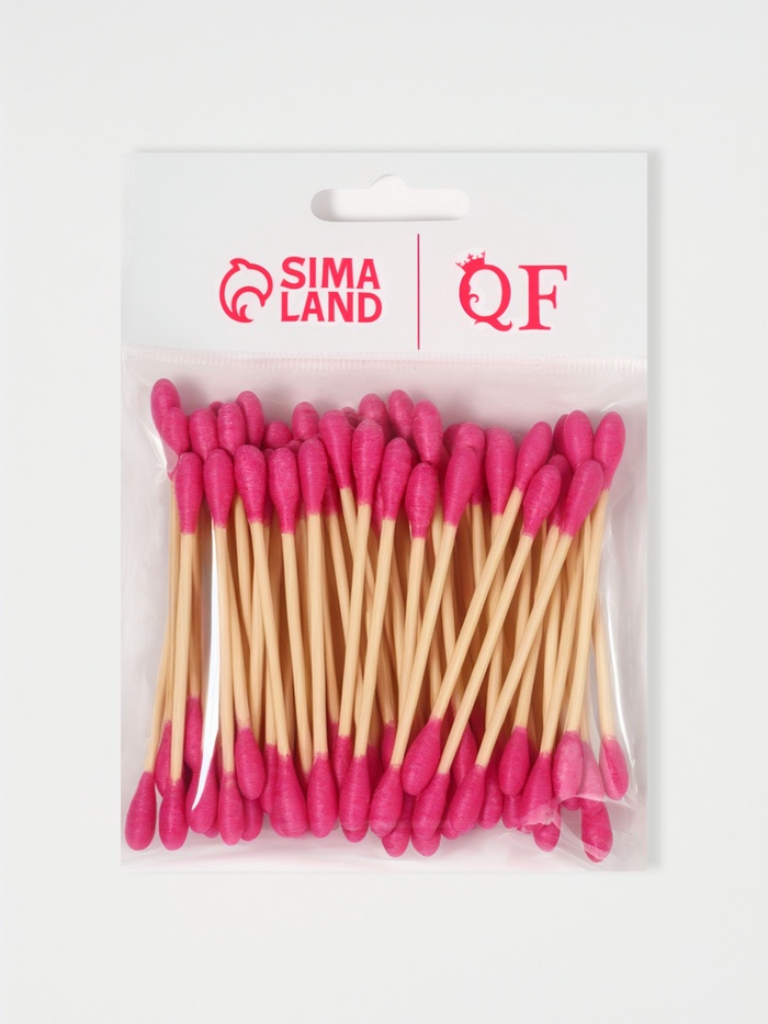 Ватные палочки на деревянной основе, 7 см, 64 шт., розовые