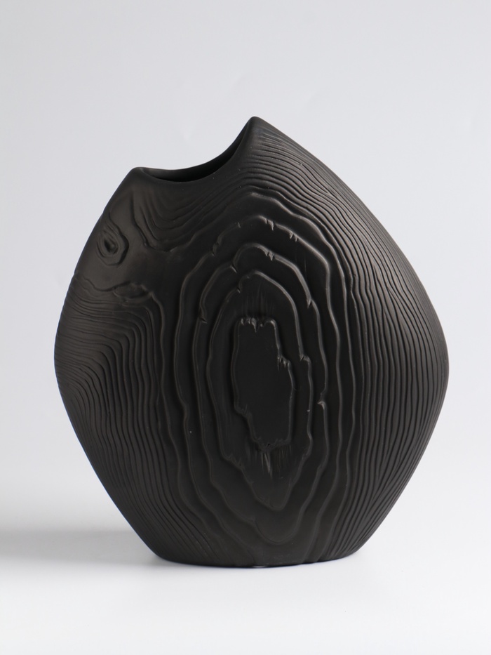 - Глубокий матовый чёрный: Ваза обладает насыщенным, благородным цветом. Матовая поверхность не отвлекает внимание, а подчеркивает красоту цветочных композиций.