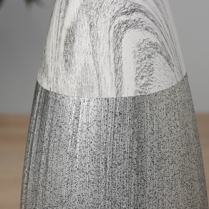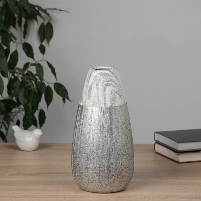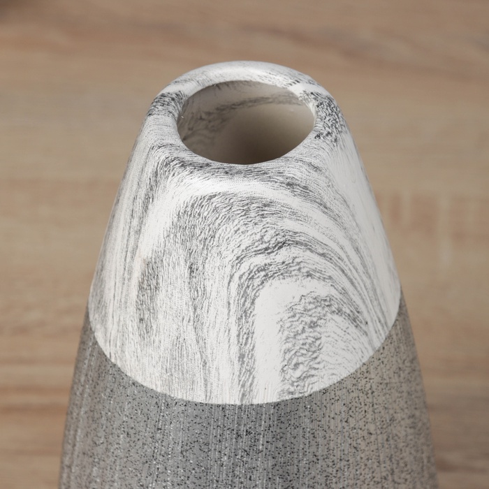Откройте для себя элегантный элемент декора, который добавит изысканности в ваш интерьер — настольную вазу с бочкообразным дизайном. Эта керамическая ваза в бело-сером цвете станет идеальным акцентом для вашего дома, привнося в него стиль и уют.