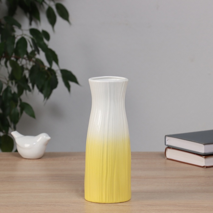 - Белый и жёлтый цвет вазы добавляет в интерьер чистоту и свежесть.