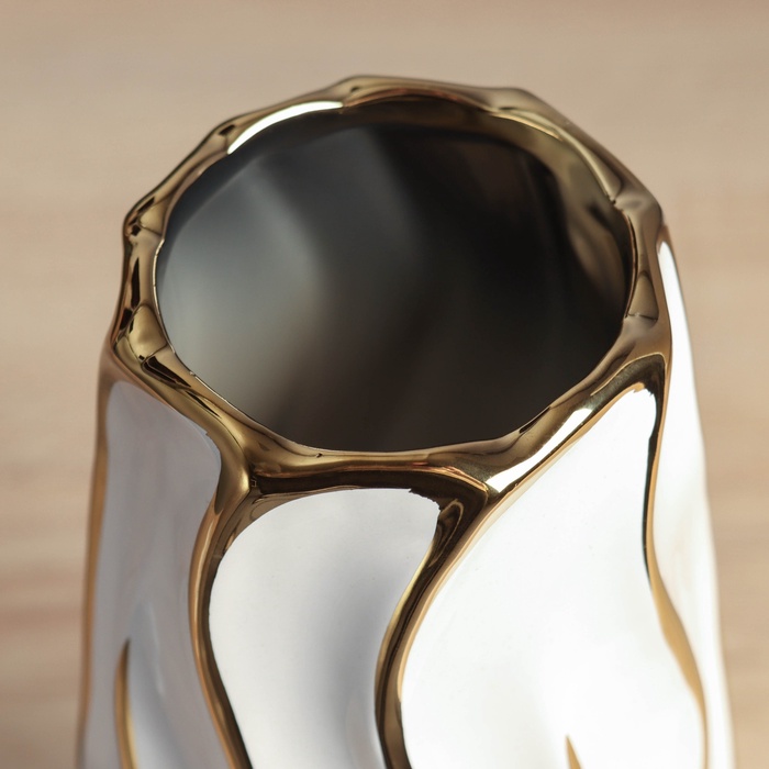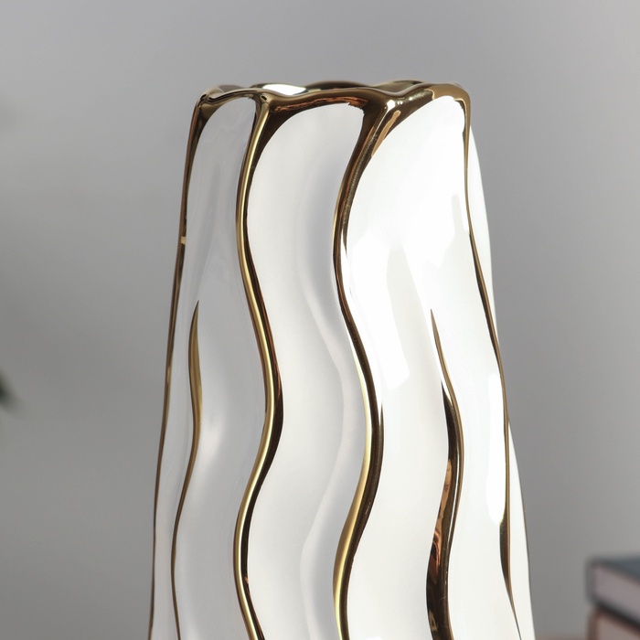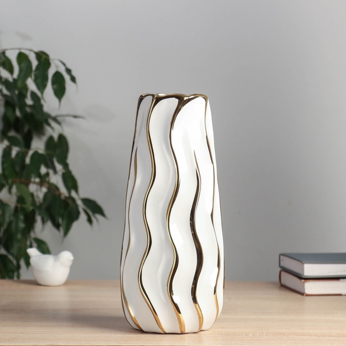 Почему стоит выбрать эту вазу? Она не только функциональна, но и эстетична. Это универсальный подарок для ценителей стиля и современного дизайна. Простота формы и продуманный дизайн делают её незаменимым аксессуаром для тех, кто ценит детали. Добавьте в свой интерьер немного роскоши — выберите белую керамическую вазу с золотистым декором!