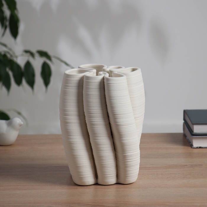 Ваза керамика настольная "Алойз" трубочки, 18,5х12 см, белый