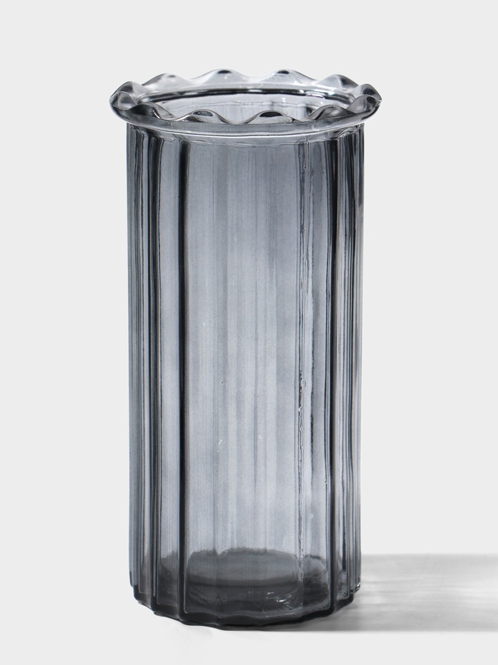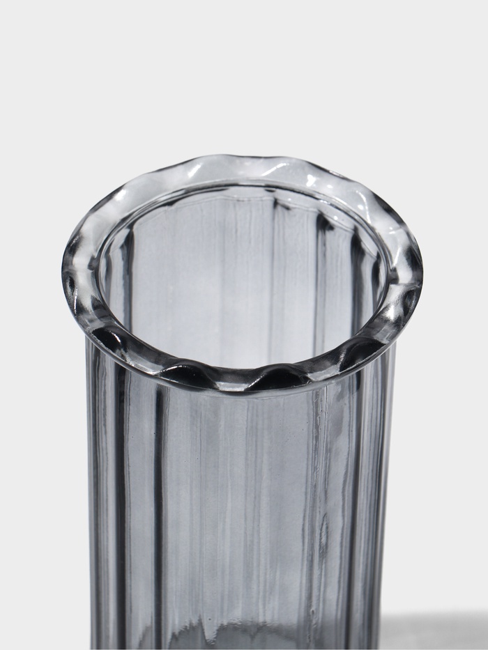 Серый шепот стекла в вашей гостиной. Настольная ваза с рельефом, 19 см — это не просто сосуд для цветов, а скульптурный акцент для интерьера. Её фактурная поверхность играет со светом, создавая живую игру теней и объёма, а лаконичная форма делает её универсальным артефактом современного дома.