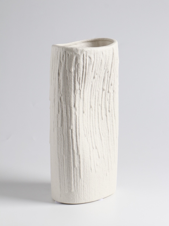 - Качественная керамика: Материал обладает приятной матовой поверхностью и интересным рельефом, он прочен и устойчив. Стенки вазы имеют достаточную толщину для устойчивости.