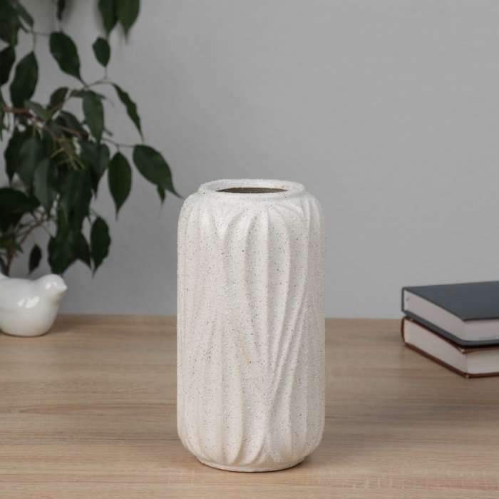 Эта настольная ваза выполнена в чистом белом цвете и украшена рельефным оформлением, что придаёт ей уникальный характер и делает её универсальным элементом декора. Она прекрасно подходит как для живых, так и для сухих цветов, позволяя вам создавать стильные композиции в любое время года.