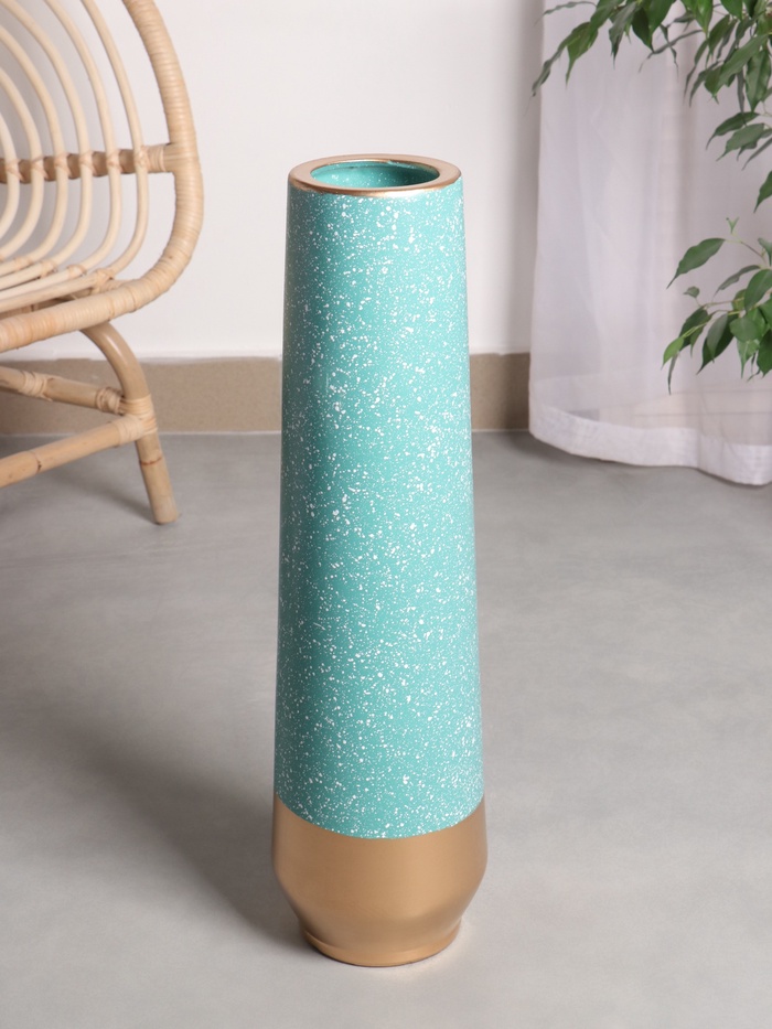 Создайте атмосферу уюта и стиля в вашем доме! Элегантная напольная ваза станет идеальным акцентом для любого интерьера. Ее зелёный цвет в сочетании с золотистым декором придаст вашему пространству свежесть и изысканность.