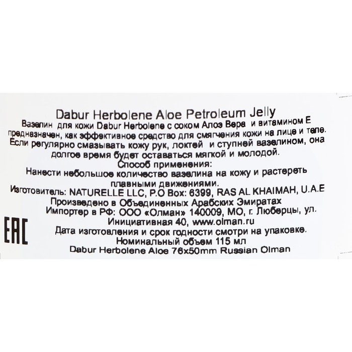 - Вазелин Dabur Herbolene не забивает поры, гипоаллергенен, не раздражает кожу и глаза.