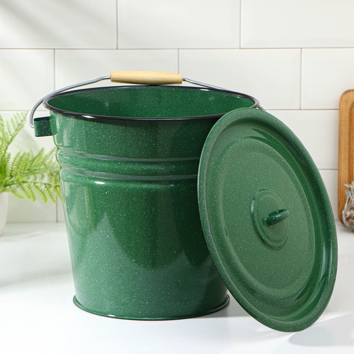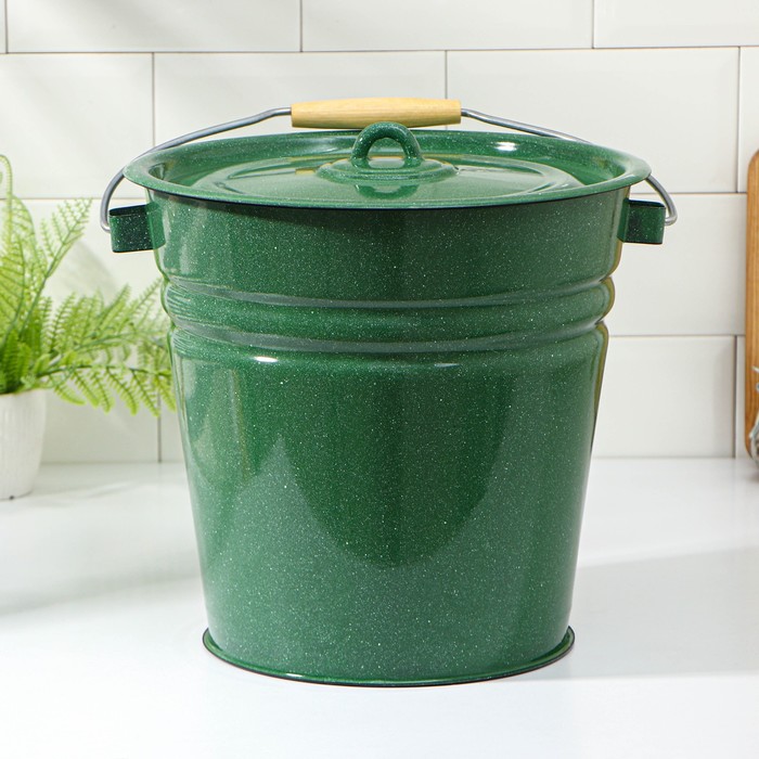 Ведро, 12 л, с крышкой, цвет зелёный