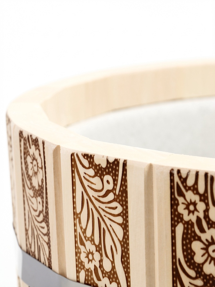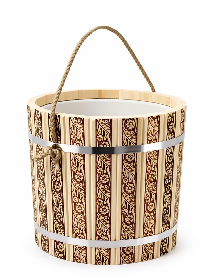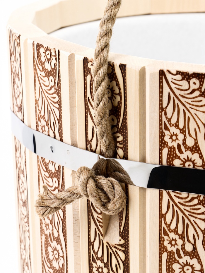Ведро из липы, 15л, пластиковая вставка, ручка-веревка "Русские узоры"