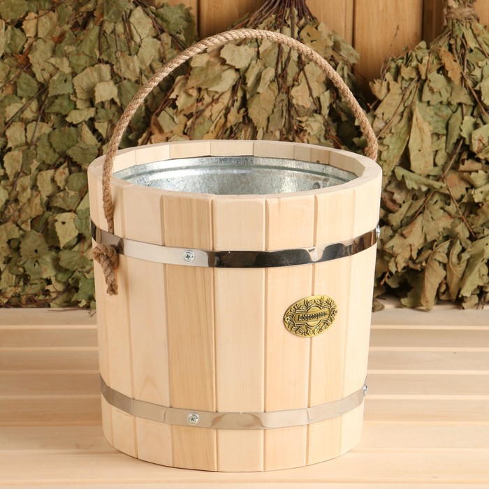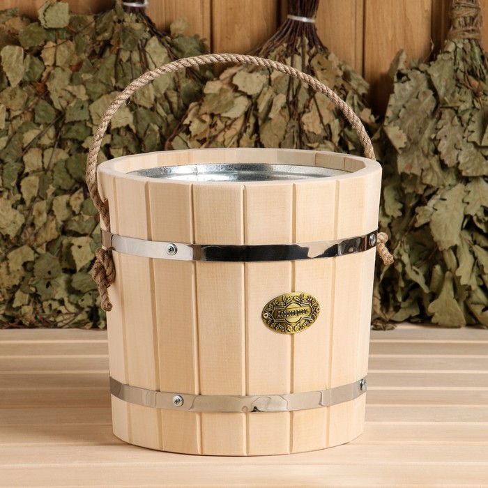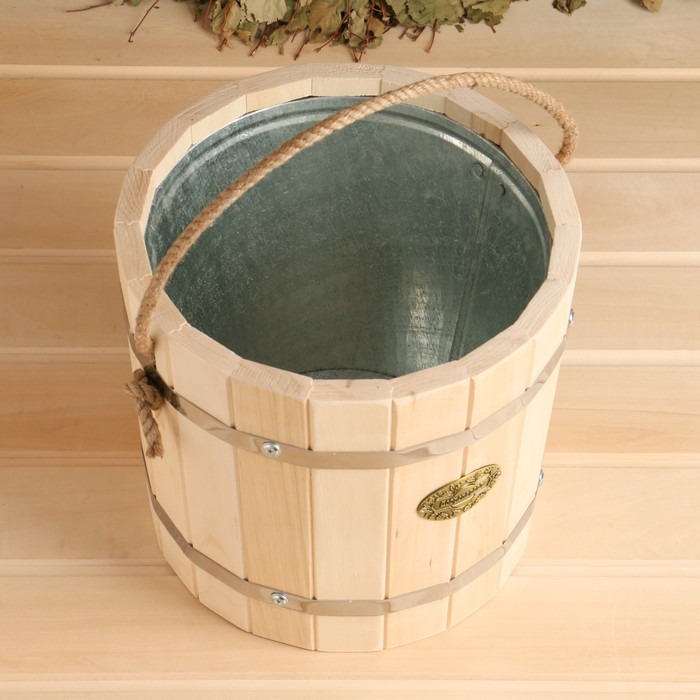 Ведро из липы, 7л, оцинкованная вставка, ручка-веревка, "Добропаровъ"