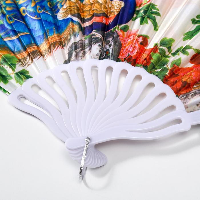 Веер пластик, текстиль "Павлин и цветы" изгиб МИКС 23 см