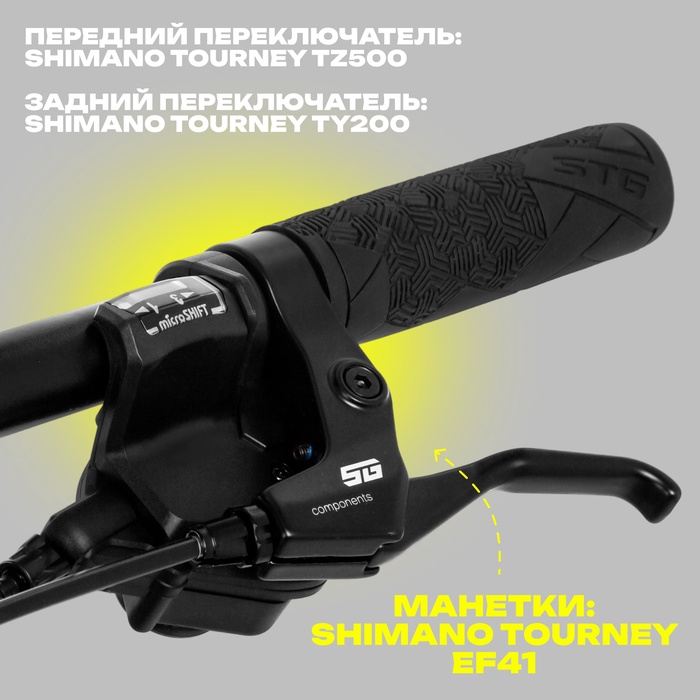 - Задний переключатель: SHIMANO TOURNEY, TX800.