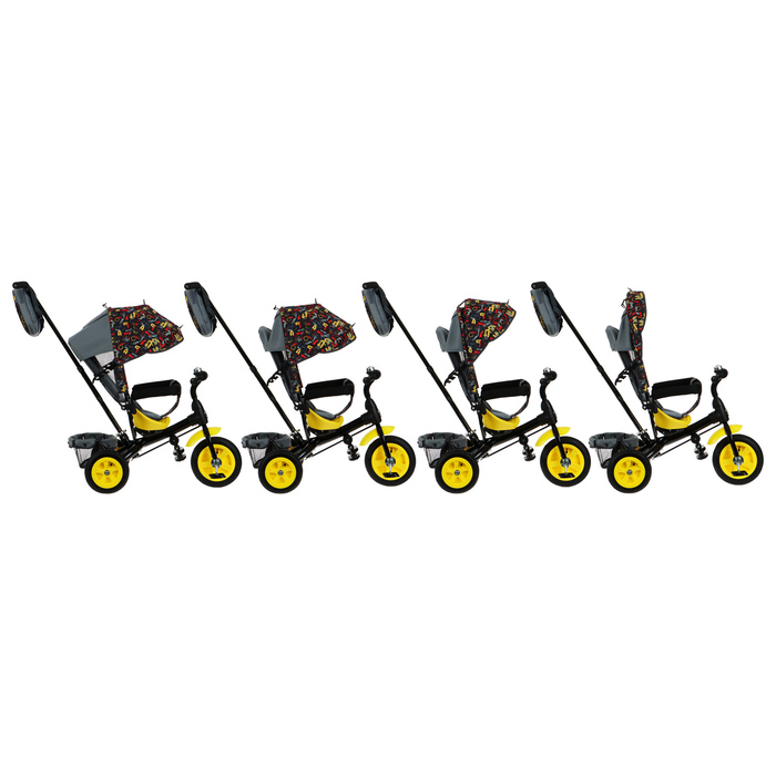 Велосипед детский трёхколёсный Vivat 1, трансформер, с родительской ручкой, диаметр колёс 8" и 10", принт стрелки, жёлтый