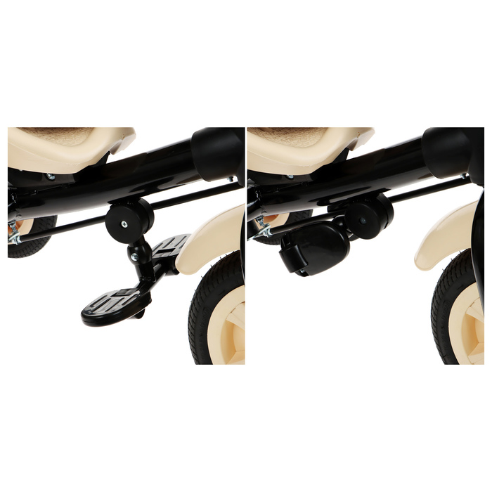 - Надувные резиновые колёса смягчают ход и обеспечивают сцепление с дорогой.