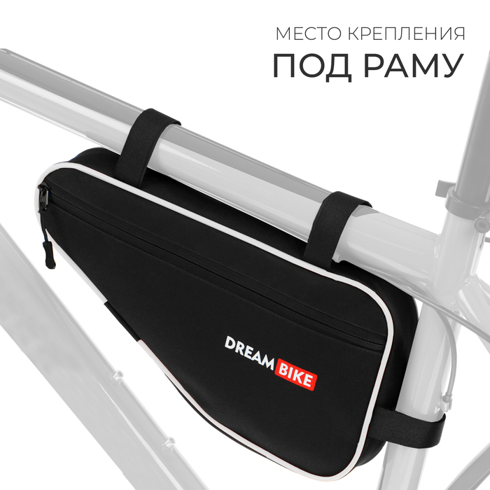 Велосумка Dream Bike — удобный аксессуар для хранения необходимых вещей при катании на велосипеде. Изделие легко и быстро крепится к раме при помощи ленты-липучки и не вызывает неудобств во время прогулки.