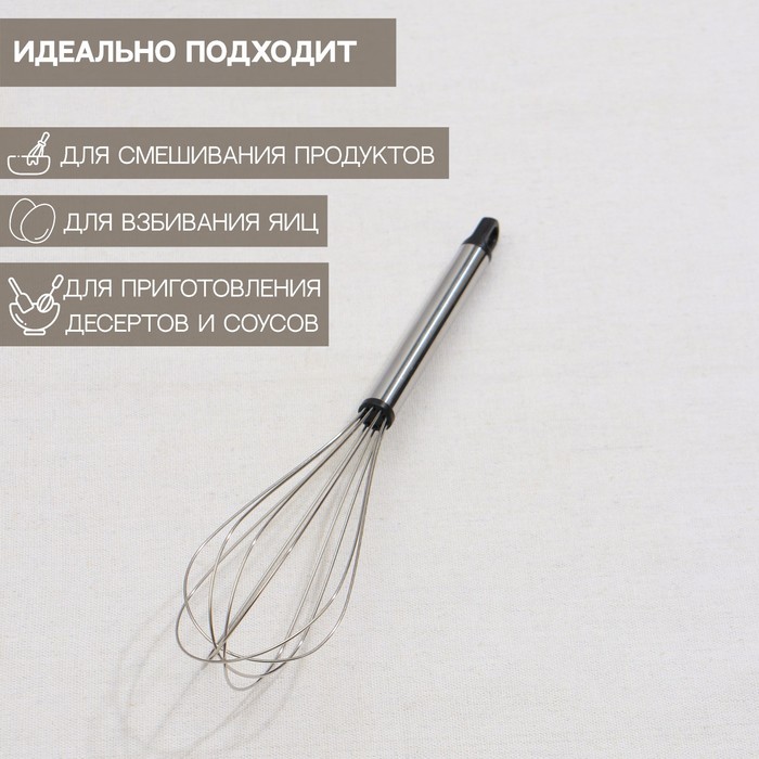 - Венчик поможет быстро взбить крем из белков и жирных сливок для украшения кондитерских изделий, а также перемешать ингредиенты для приготовления пышных оладий.