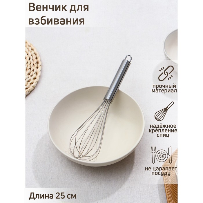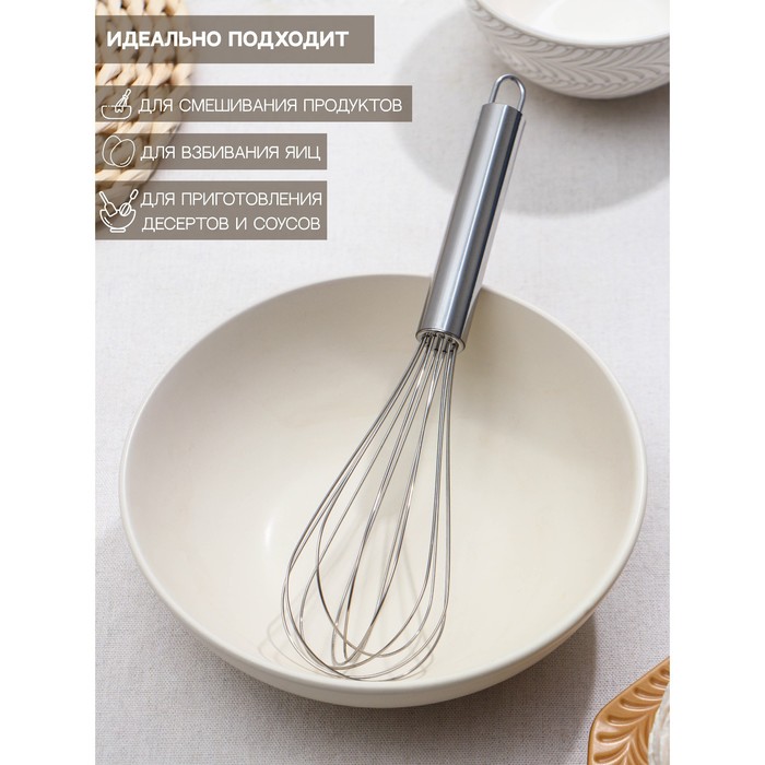 - Венчик поможет быстро взбить крем из белков и жирных сливок для украшения кондитерских изделий, а также перемешать ингредиенты для приготовления пышных оладий.