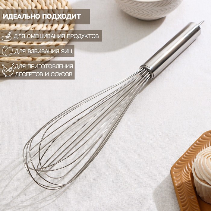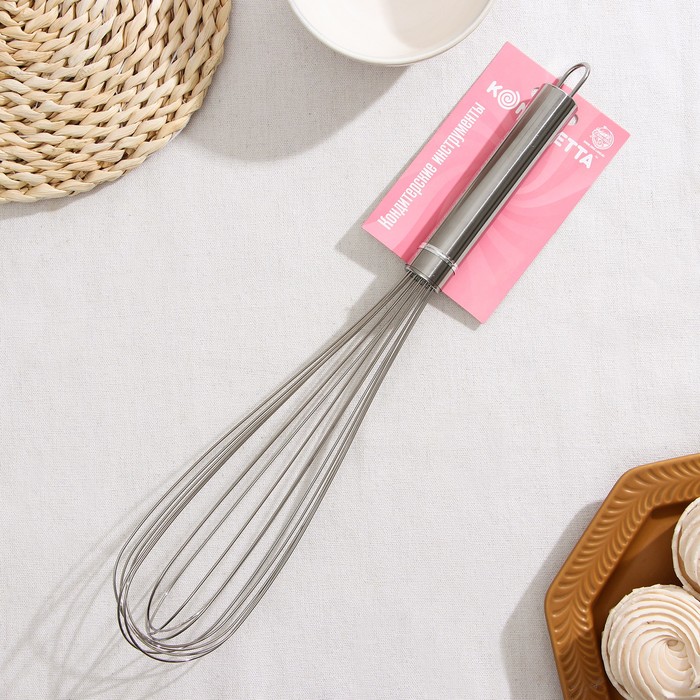 - Венчик поможет быстро взбить крем из белков и жирных сливок для украшения кондитерских изделий, а также перемешать ингредиенты для приготовления пышных оладий.