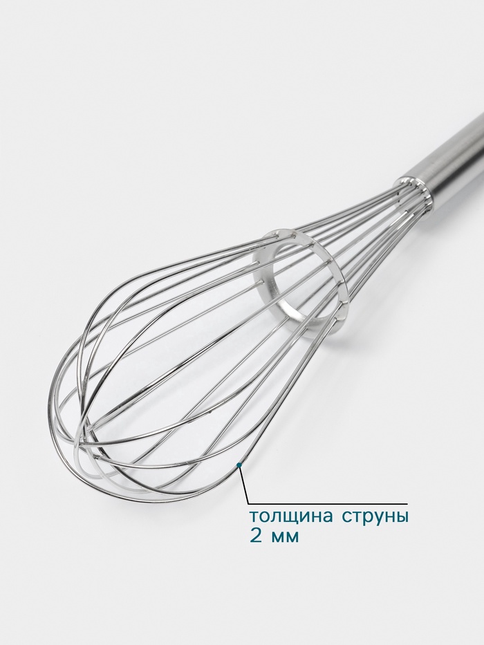 Этот венчик станет вашим надежным помощником в приготовлении блюд. Прочные струны толщиной 2 мм эффективно справляются с задачами, а удобная ручка обеспечивает надежный захват.