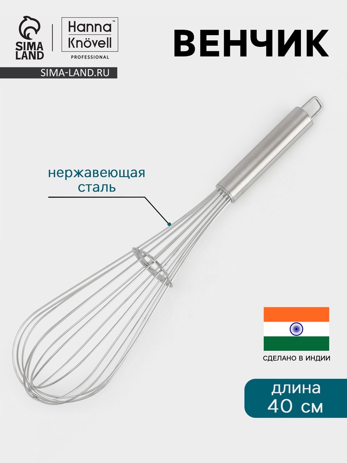 - Удобная длина: 40 см обеспечивает комфортное использование, позволяя легко взбивать яйца, сливки и другие ингредиенты.