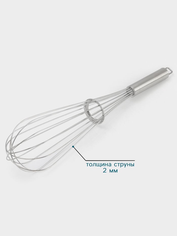 Этот венчик станет вашим надежным помощником в приготовлении блюд. Прочные струны толщиной 2 мм эффективно справляются с задачами, а удобная ручка обеспечивает надежный захват.