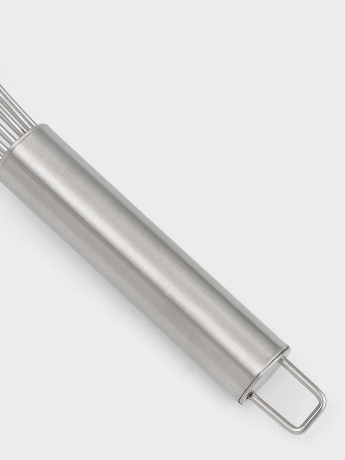 - Качественный материал: рабочая часть и ручка выполнены из нержавеющей стали, что гарантирует долговечность и устойчивость к коррозии. Легко чистится и подходит для мытья в посудомоечной машине.