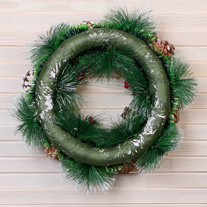 - Форма — венок, универсальный элемент для размещения на входной двери, стене или как часть ёлочного декора.