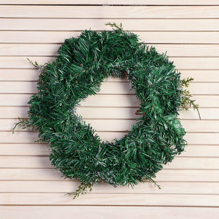 Этот венок делает пространство перед домом или в комнате частью вашей личной зимней истории. Зелёно-красная палитра и натуральные мотивы работают вместе, чтобы создать атмосферу доброжелательности и семейного тепла. Используйте его как основной элемент оформления или как фон для других украшений — он одинаково хорошо усиливает дух праздника и предпраздничное ожидание.