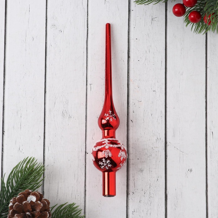 Новогодний топпер «Снежный узор» — завершающий акцент для елки, сочетающий классику и современность. Эта верхушка высотой 20 см выполнена в стиле новогоднего барокко с элементами советского дизайна и фьюжн-подхода. Сочетание красного цвета и декоративного снежного рисунка создаёт яркий, запоминающийся образ праздника.