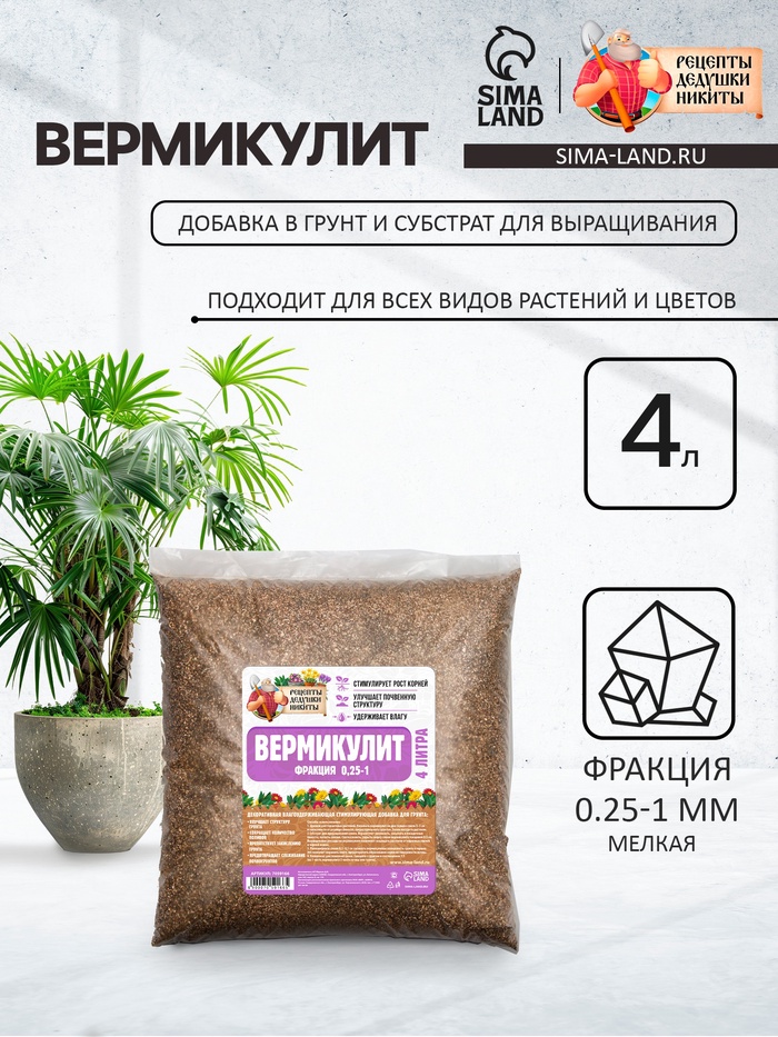 Это идеальный помощник для садоводов и цветоводов, стремящихся создать оптимальные условия для роста своих растений. Фракция 3-5 мм обеспечивает отличную воздухопроницаемость и дренаж, что особенно важно для здоровья корневой системы. Используйте вермикулит при посадке растений, добавляя его в грунт для улучшения его свойств. Он также отлично подходит для мульчирования, что помогает сохранить влагу и защитить растения от перепадов температуры.