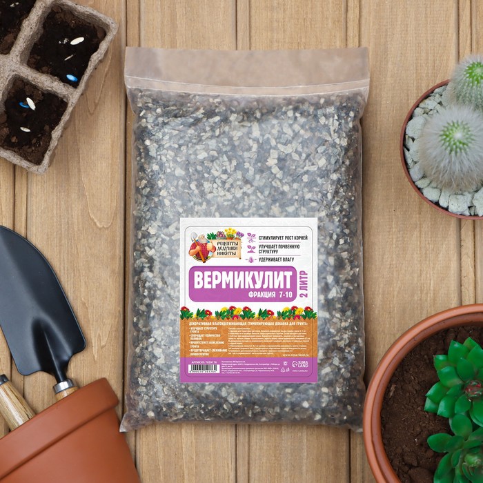 Декоративная, аэрирующая, влагоудерживающая добавка для почвогрунтов. А также, Вермикулит используется в качестве кормовой добавки для крупного рогатого скота и птицы, за счет чего снижается заболеваемость кишечника, улучшается выведение токсинов из организма. Повышается содержание гемоглобина; количество эритроцитов; уровень белка, кальция и фосфата.