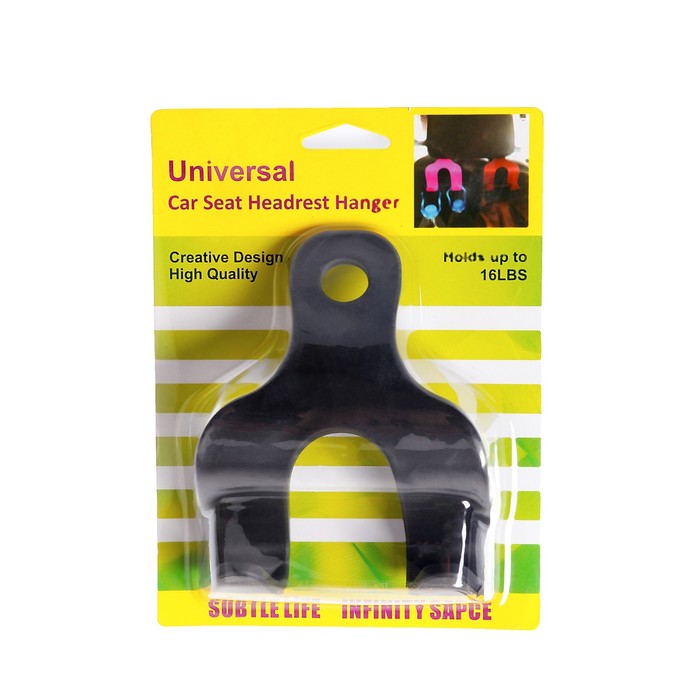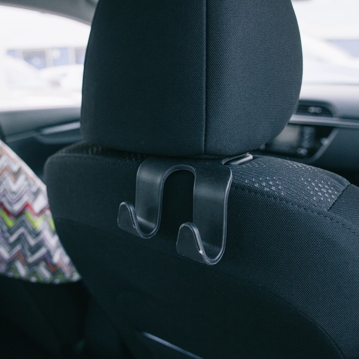 Вешалка-крючок на подголовник, два крючка, чёрный, пластик