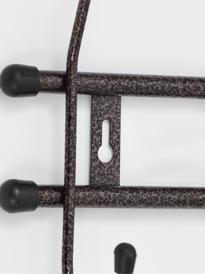 Особое внимание привлекает покрытие в цвете «медный антик» — благородный оттенок с лёгким эффектом состаренного металла придаёт изделию характер и визуальную глубину. Такая вешалка станет не только функциональным элементом, но и стильным акцентом интерьера, отлично вписываясь в классические, винтажные, лофт и индустриальные пространства.