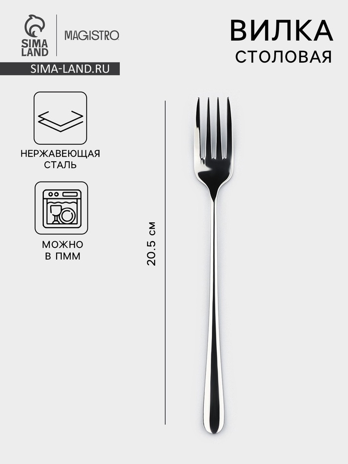 Вилка столовая Magistro Elegance, 20.5×2.5 см, на подвесе, толщина 2 мм, нержавеющая сталь, серебристая