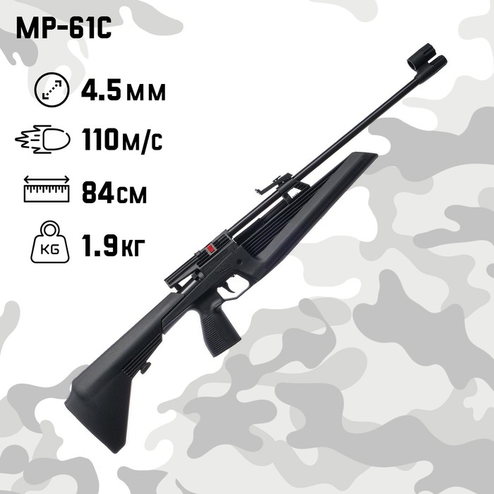МР-61С – это 5-зарядная версия пневматической винтовки MP-60, подходящая как новичкам, которые обучаются стрельбе, так и более опытным пользователям для любительской стрельбы.
