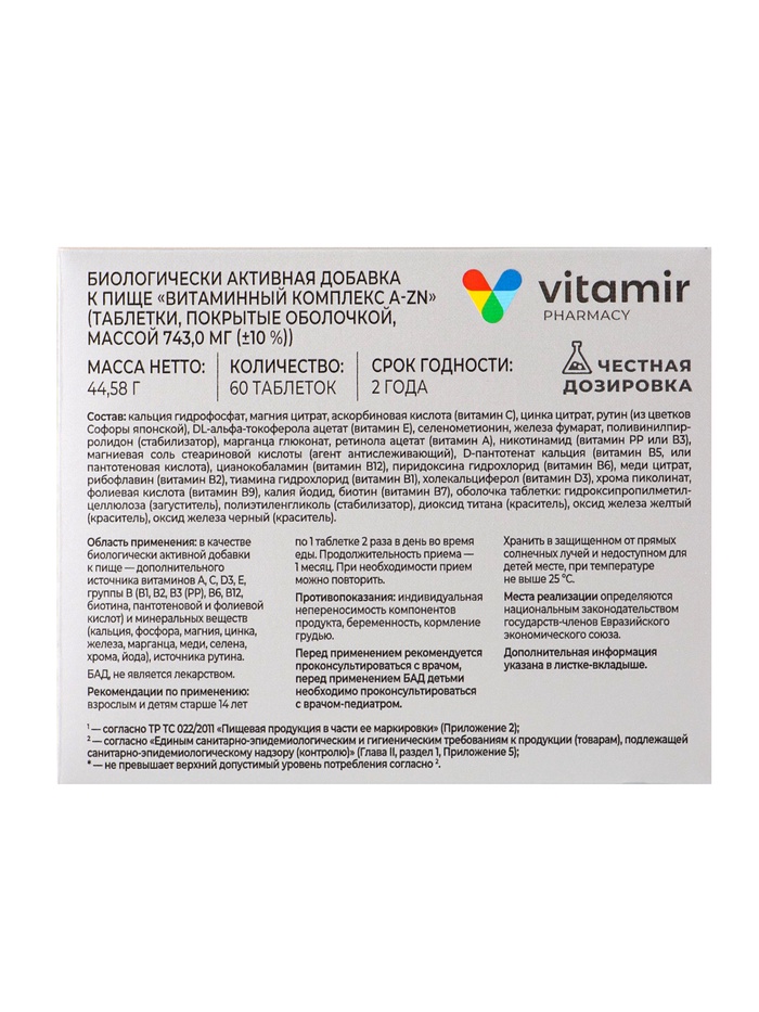 Витаминно-минеральный комплекс A–Zn «Витамир» TETRALAB — эффективная поддержка иммунитета, энергии и общего здоровья организма. Подходит для регулярного применения, способствует укреплению защитных функций, повышению жизненного тонуса и поддержке всех систем организма.