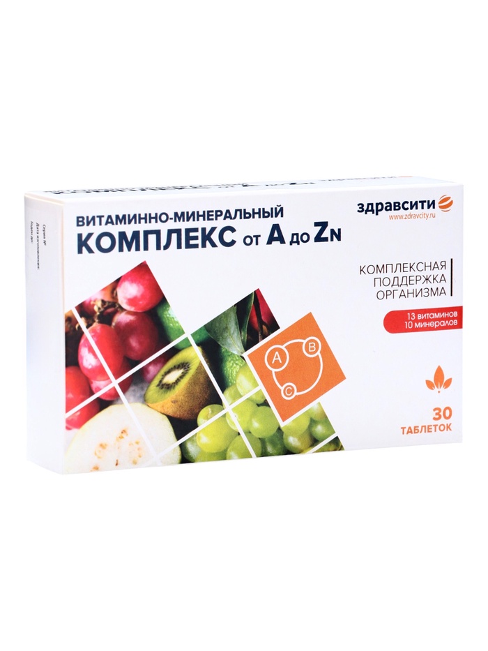 Состав: носитель: микрокристаллическая целлюлоза Е460 (i); кальция карбонат; магния оксид; аскорбиновая кислота; цинка цитрат; токоферола ацетат (DL-альфа-токоферола ацетат, крахмал модифицированный, мальтодекстрин, диоксид кремния аморфный); никотинамид; антислёживающий агент: тальк Е553 (iii); носитель: гидроксипропилметилцеллюлоза Е464; железо электролитическое; носители: кроскарамеллоза натрия Е468, мальтодекстрин Е1400; краситель Е171; ретинола ацетат; марганца сульфат; антислёживающий агент: диоксид кремния аморфный Е551; носитель: стеариновая кислота Е570; антислёживающий агент: магния стеарат Е470; влагоудерживающий агент: пропиленгликоль Е1520; кальция пантотенат; носители: поливинилпирролидон E1201, карбоксиметилцеллюлозы натриевая соль Е466; меди цитрат; фитоменадион; холекальциферол; пиридоксина гидрохлорид; тиамина гидрохлорид; рибофлавин; фолиевая кислота; хрома аспарагинат; калия йодат; натрия селенит; натрия молибдат; биотин; цианокобаламин.