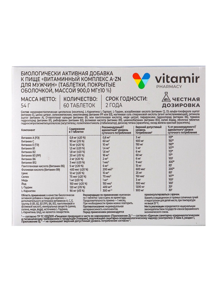 Витаминный комплекс A–Zn для мужчин «Витамир» TETRALAB — надёжная поддержка иммунитета, энергии и мужского здоровья. Подходит для регулярного применения, способствует укреплению защитных функций организма, повышению жизненного тонуса и поддержке репродуктивной системы.