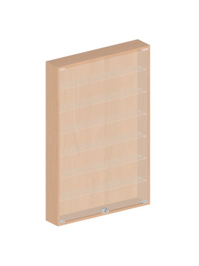 Цвет бук светлый придаёт витрине теплый и привлекательный вид, что делает её стильным элементом интерьера. Максимальная нагрузка на одну стеклянную полку составляет не более 5 кг, что позволяет безопасно размещать различные товары.
