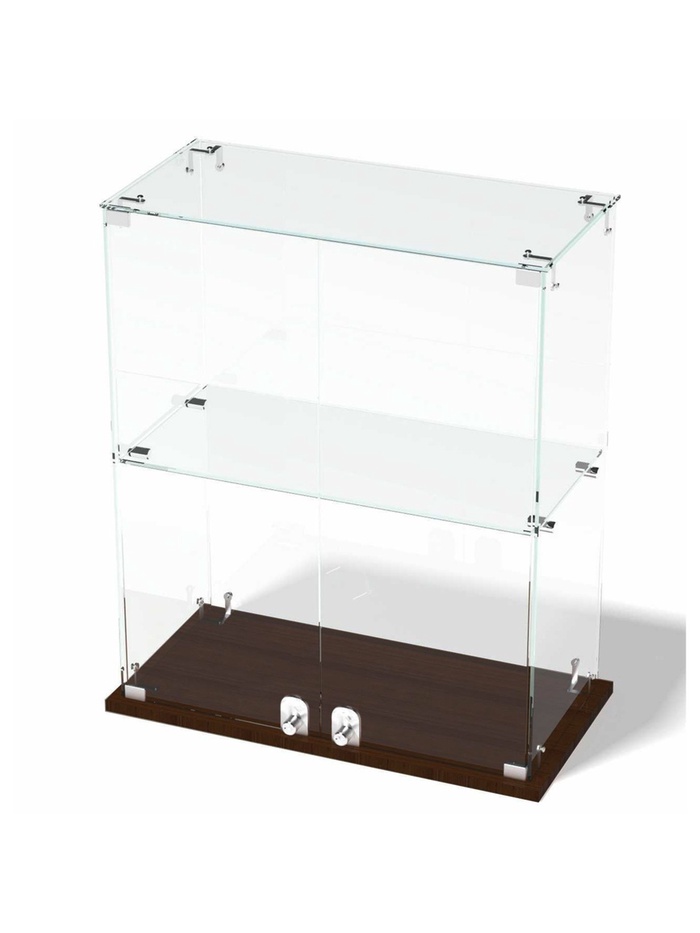 Выполненная в теплой гамме деревянного оттенка «венге», витрина органично впишется в интерьер, радуя взор и добавляя необходимую долю изысканности и теплоты. Наличие единственной открытой полки обеспечивает свободный доступ к продукции, упрощает управление процессом выставки и ускоряет принятие решений покупателями.