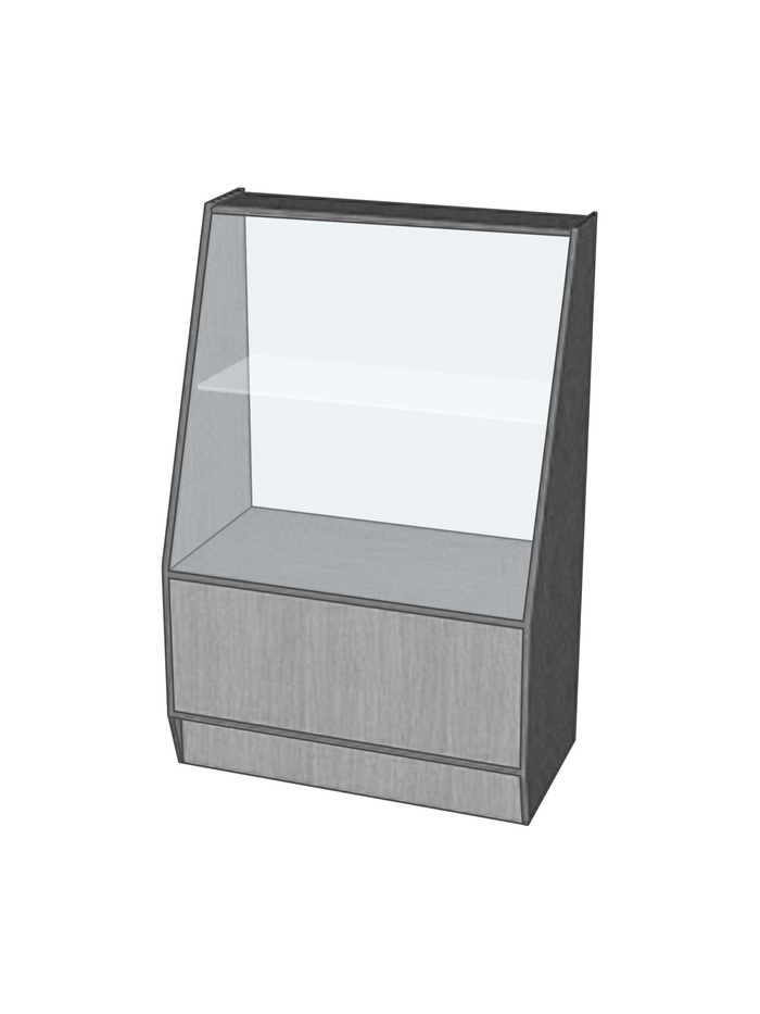 Элегантное решение для демонстрации товаров Стильная витрина с серыми оттенками и стеклянными полками станет отличным выбором для вашего магазина или выставочного пространства, обеспечивая удобство и привлекательный внешний вид.