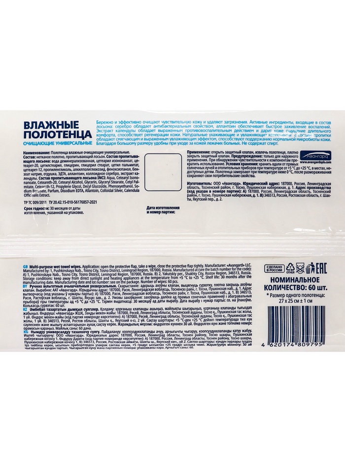 Надёжная герметичная упаковка с удобной крышкой сохраняет свежесть и влажность полотенец до последней штуки. В коробке 60 полотенец — достаточно, чтобы быть уверенным: чистота и свежесть будут под рукой в любой момент.