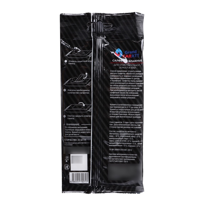 Влажные салфетки Grand Caratt предназначены для эффективной очистки стёкол машины от пыли и грязи.