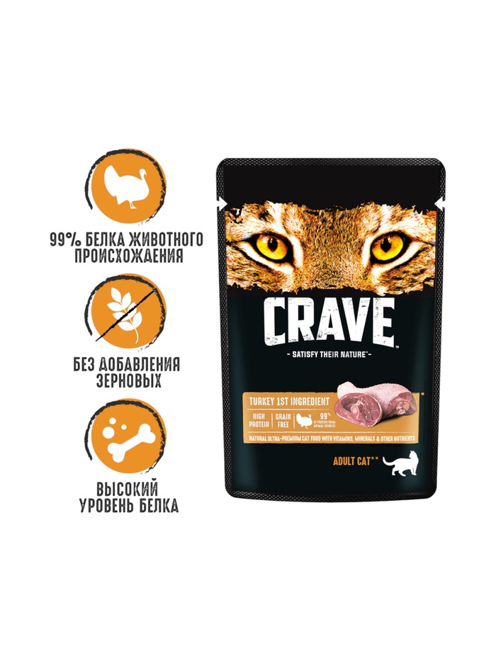 Влажный корм Crave для кошек, пауч индейка в желе, 70г