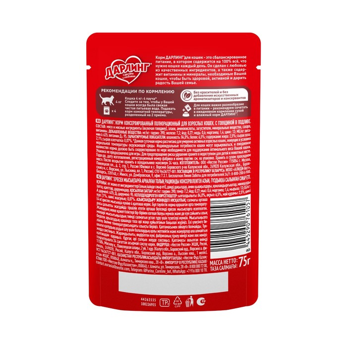 Корм ДАРЛИНГ для кошек – это сбалансированное питание, в котором содержится на 100% всё, что нужно кошке каждый день. Он сделан с любовью из качественных ингредиентов, а также содержит витамины и минералы, необходимые кошке, чтобы быть здоровой, активной и дарить радость Вашей семье.