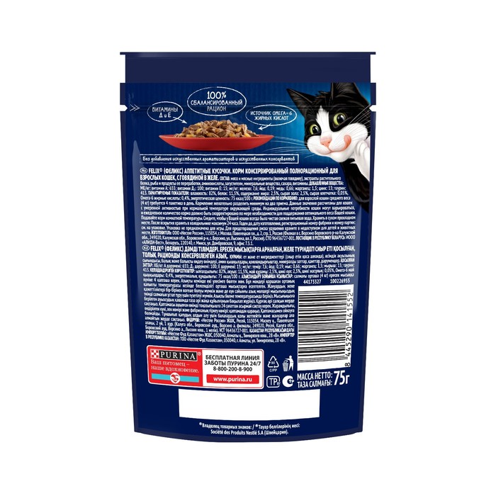 Влажные корма для кошек Felix, созданные из высококачественных ингредиентов с заботливо приготовленными нежными кусочками в аппетитном желе подарят Вашему любимцу потрясающие ощущения и оптимальную комбинацию питательных веществ для активной и здоровой жизни.