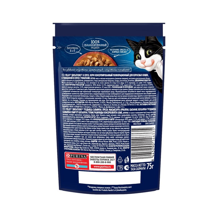 Чтобы Ваш питомец получил богатейшую палитру ощущений вкуса и аромата, эксперты Purina создали влажный корм для взрослых кошек Felix «Sensations». Влажные корма для кошек Felix, созданные из высококачественных ингредиентов с заботливо приготовленными нежными кусочками в аппетитном желе подарят Вашему любимцу потрясающие ощущения и оптимальную комбинацию питательных веществ для активной и здоровой жизни.