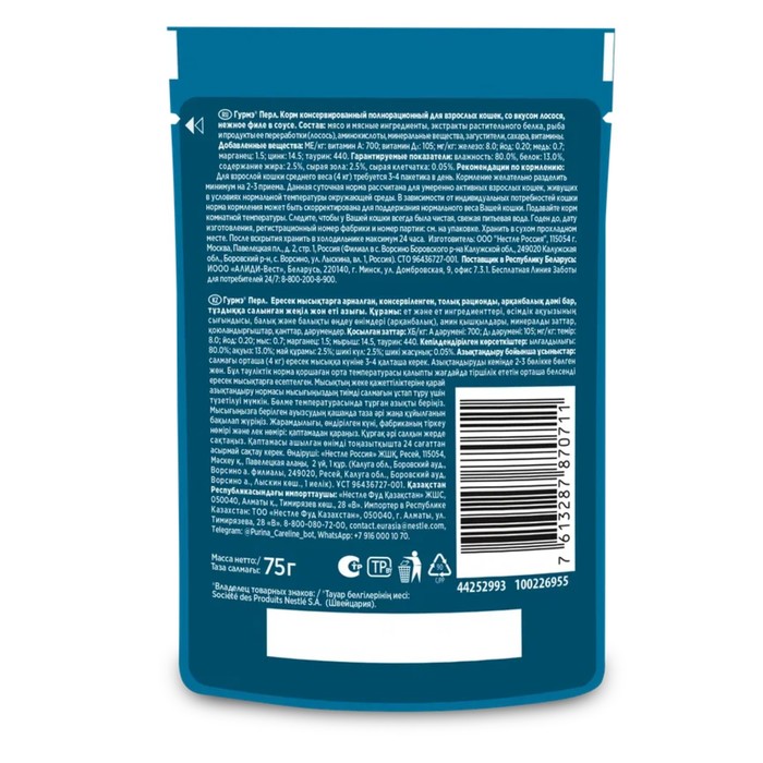 •Влажные корма Гурмэ® не содержат искусственных ароматизаторов и консервантов.