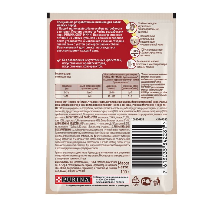 • Влажный корм для собак Purina One является полнорационным и содержит необходимые для здоровья микронутриенты.