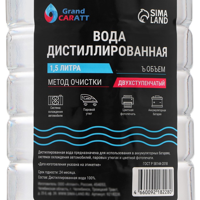 Дистиллированная вода предназначена для разведения концентратов охлаждающих жидкостей и электролита при обслуживании автомобилей и различного бытового применения (утюги, гладильные машины, увлажнители воздуха и т.п. ). При отрицательной температуре замерзает. После размораживания полностью сохраняет свои свойства. Не требует специальных условий хранения и соблюдения правил безопасности.